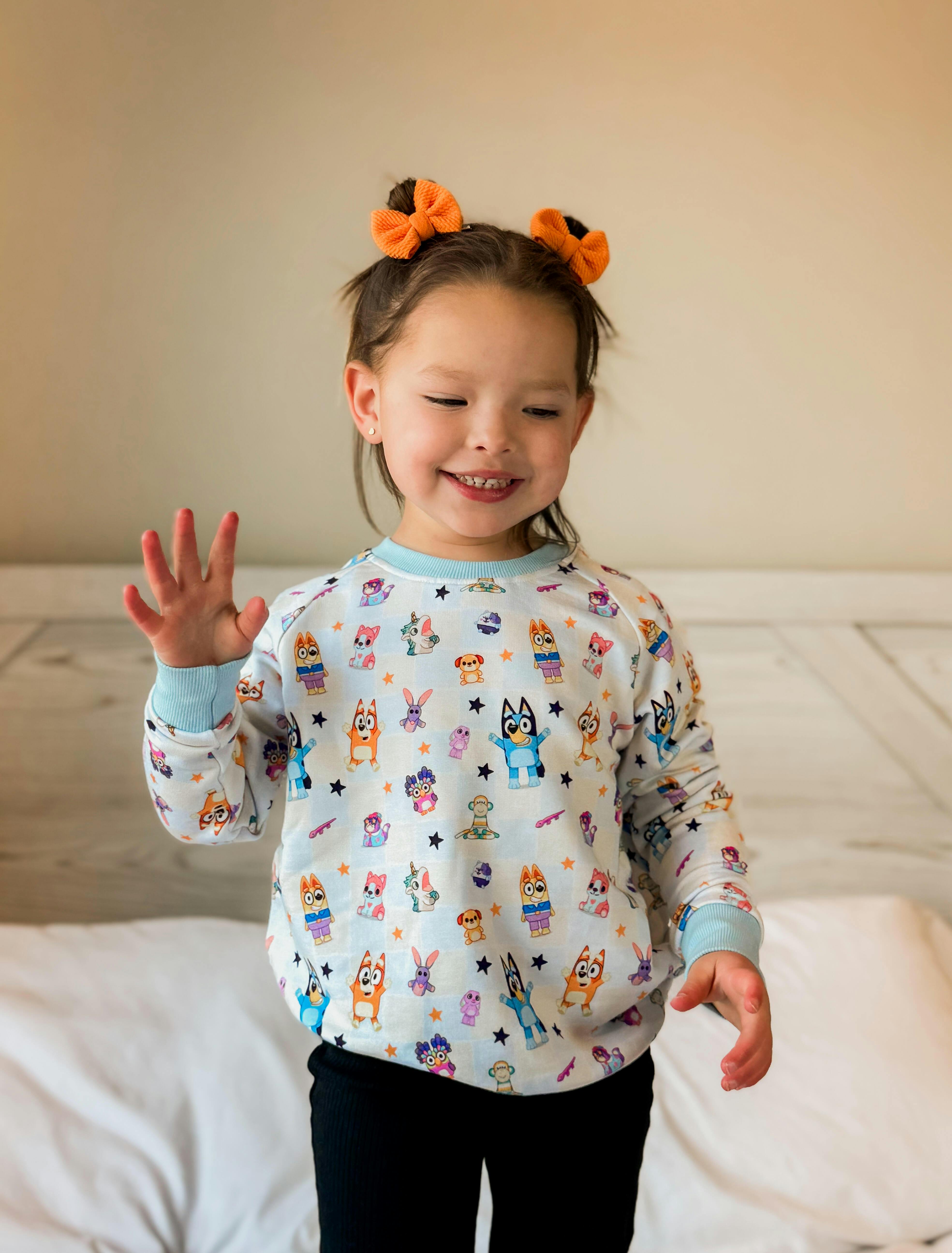 This is by far the cutest Bluey print I've seen so far! The crew neck style is unmatched as it is so soft and the colors are so beautiful.